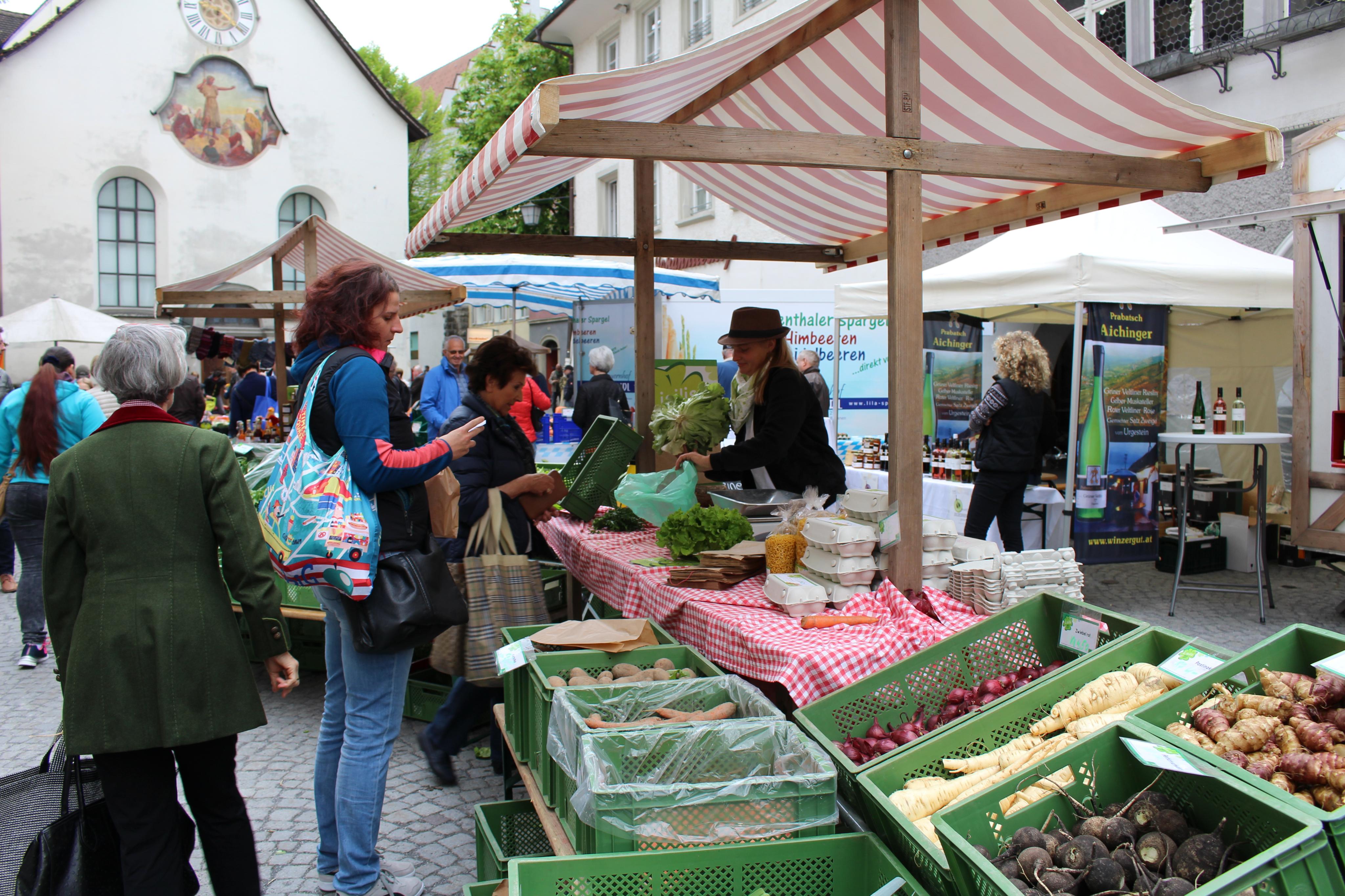 Lebendiger Wochenmarkt in der Feldkircher Innenstadt