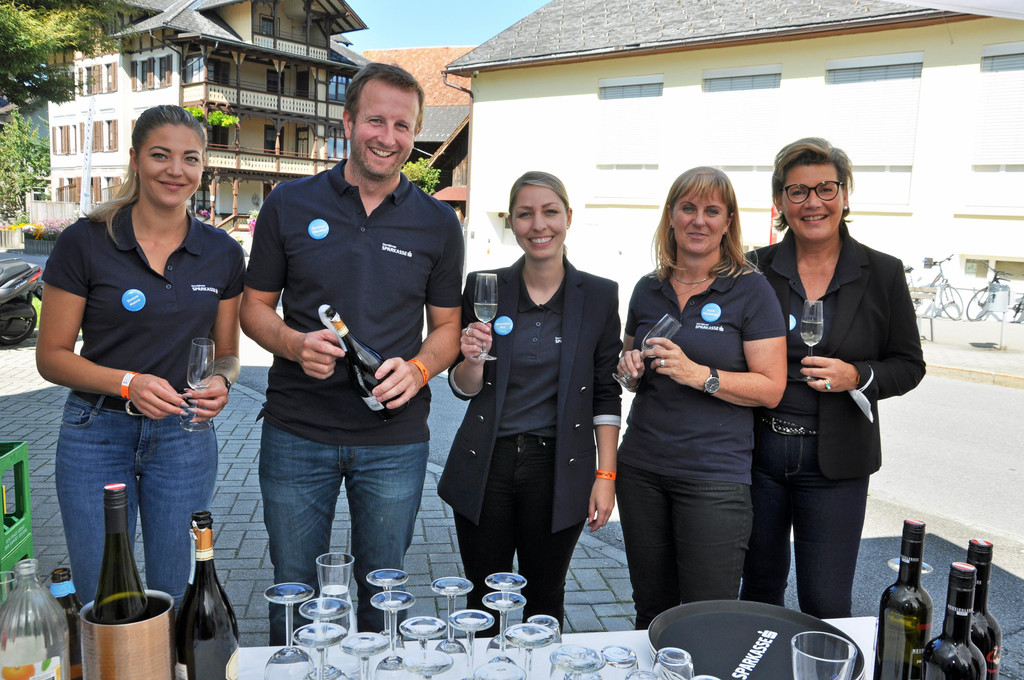 Das Sparkasse-Team verwöhnte die Gäste mit kühlen Getränken. (v. l. n .r.: Simone Maurer, Christian Hagspiel, Jacqueline Rist, Irene Steinbauer und Christa Trykar)