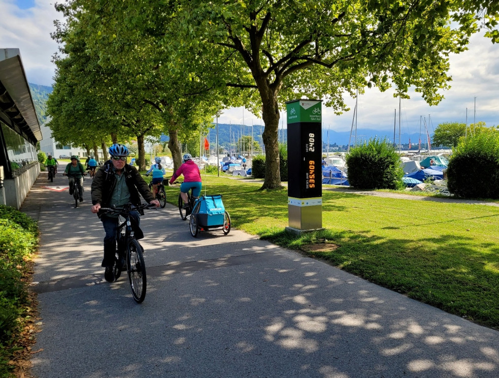 Radzählstelle am Bodensee-Radweg am Lochauer Hafen mit Sommerrekordwert