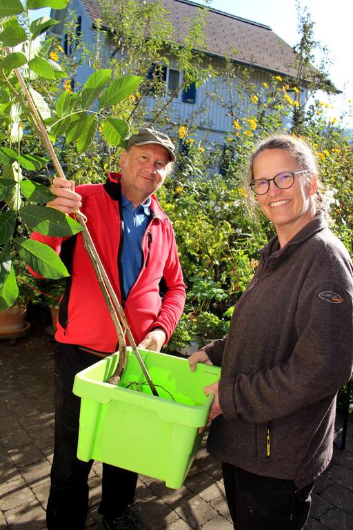 Thomas Filler (Obmann des Umwelt- und Raumplanungsausschusses in Hörbranz) hatte für Melitta Sohm einen Edelnussbaum mitgebracht.