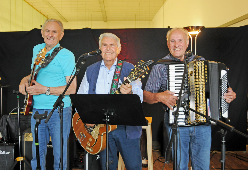 „Trio Amigos“ oder „Dachdecker“: Walter Nagel mit Heinz und Arno Blum, die bereits seit 1956 in Höchst musiziert hatten.