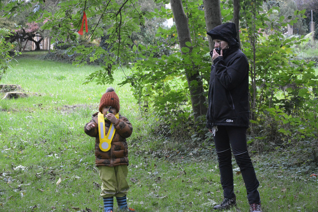 Mit dem Walki Talki spielen die Kinder gerne. Leiterin Silke Rezsnyak (rechts) darf auch mitspielen.