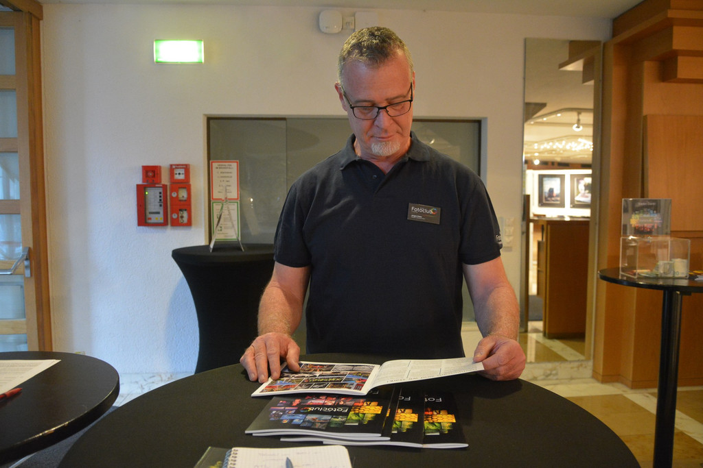 Jürgen Peter zeigt stolz die Meisterwerke des Fotoclubs.