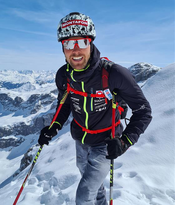 Daniel Zugg auf dem Bike im Zimbapark und beim Skibergsteigen auf dem Gletscher