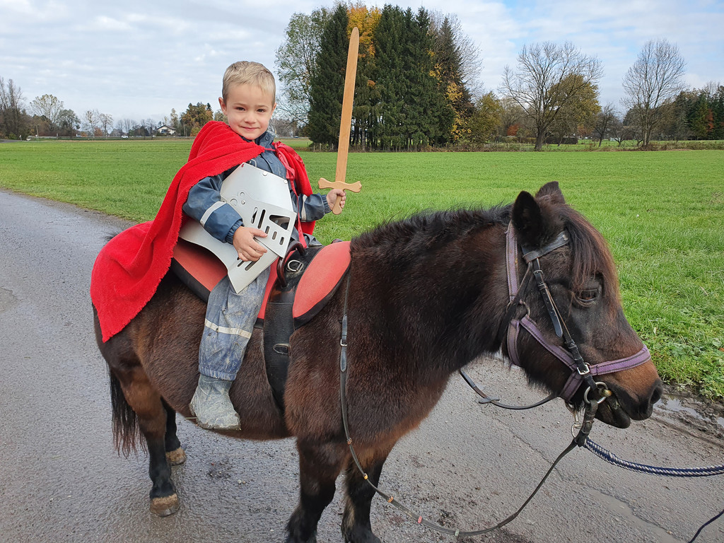 Im Riedkindergarten durften die Kinder sich als Heiliger Martin verkleiden und die Geschichte auf dem Pferd nachspielen.