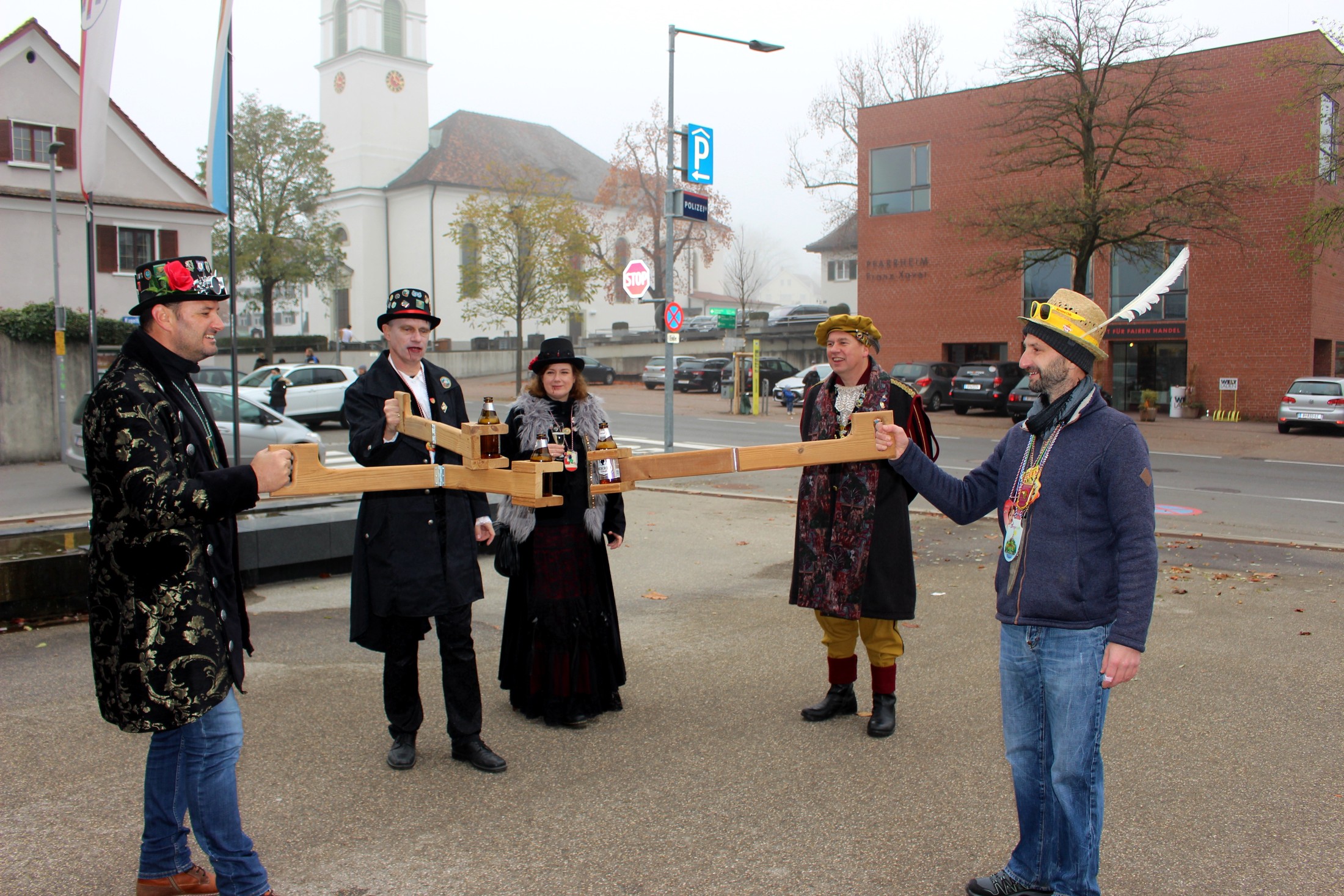 Umtrunk in „ghörigem Abstand“ mit dem patentierten Abstand-Halter.