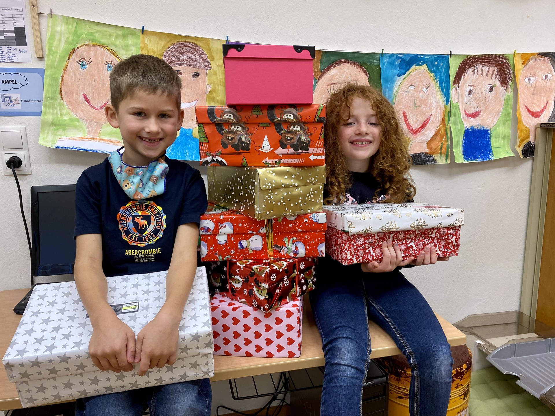 Auch Fabio (7) und Eva (7) sind begeistert von der Aktion "Weihnachten im Schuhkarton".