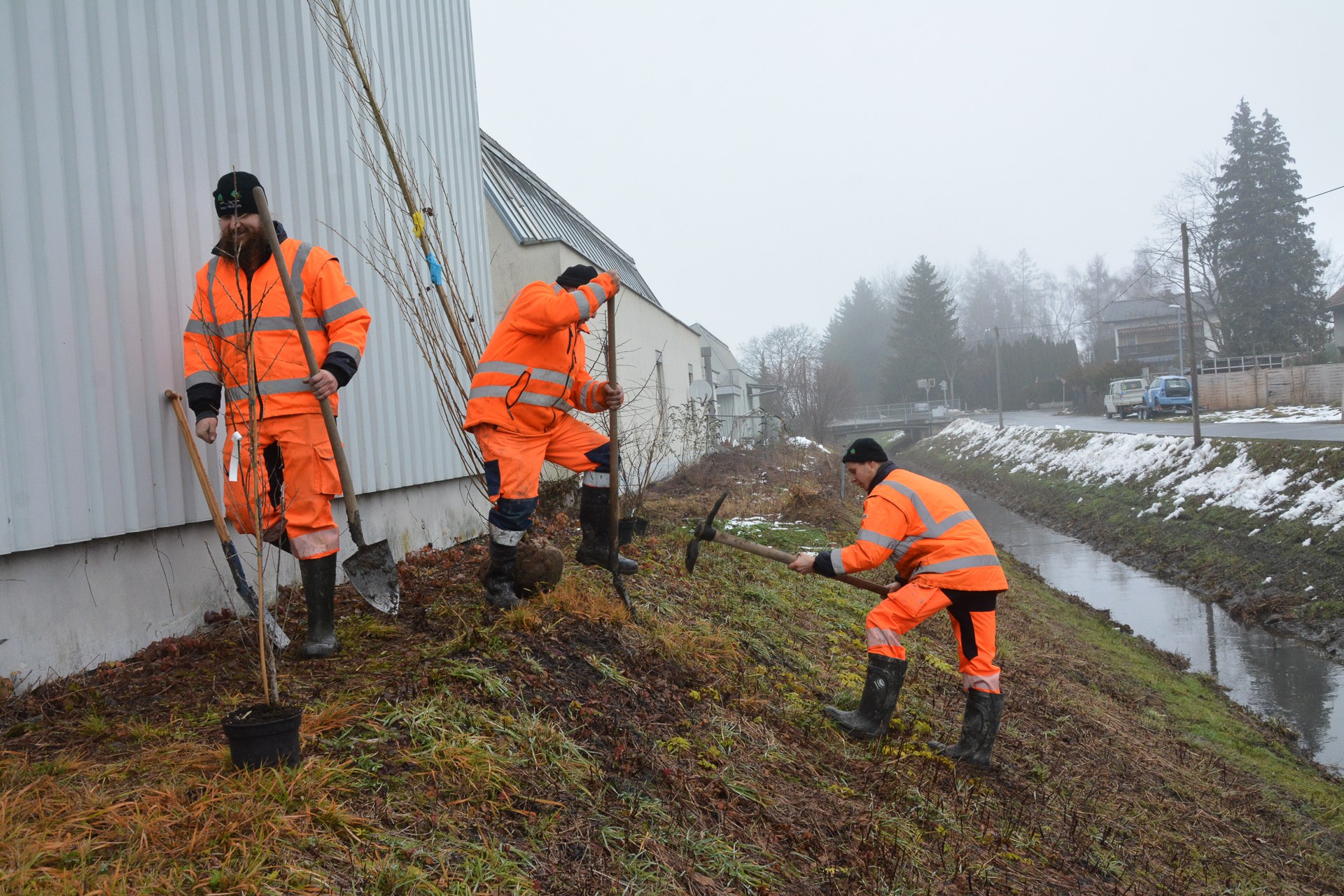 Die Bauhofgärtner pflanzten 25 Bäume und 40 Sträucher entlang des Grindelkanals.