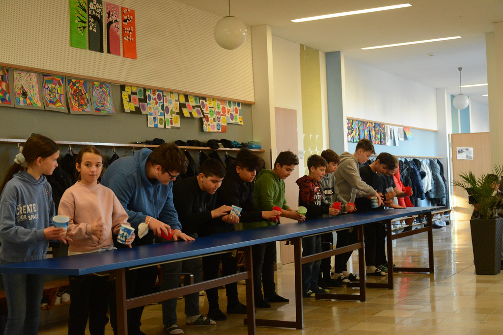 Die Schüler zeigten großes Geschick beim rhthmischen Grooven des Cup-Songs.
