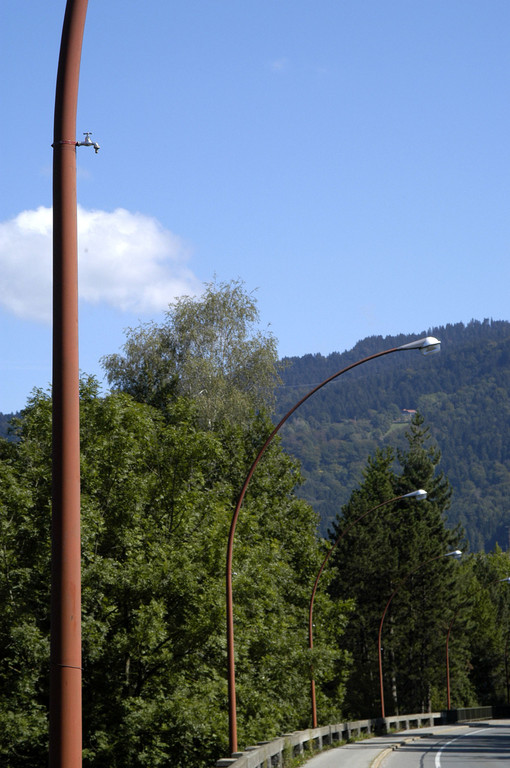 Wasserhähne an den Straßenlampen in der Arlbergstraße.