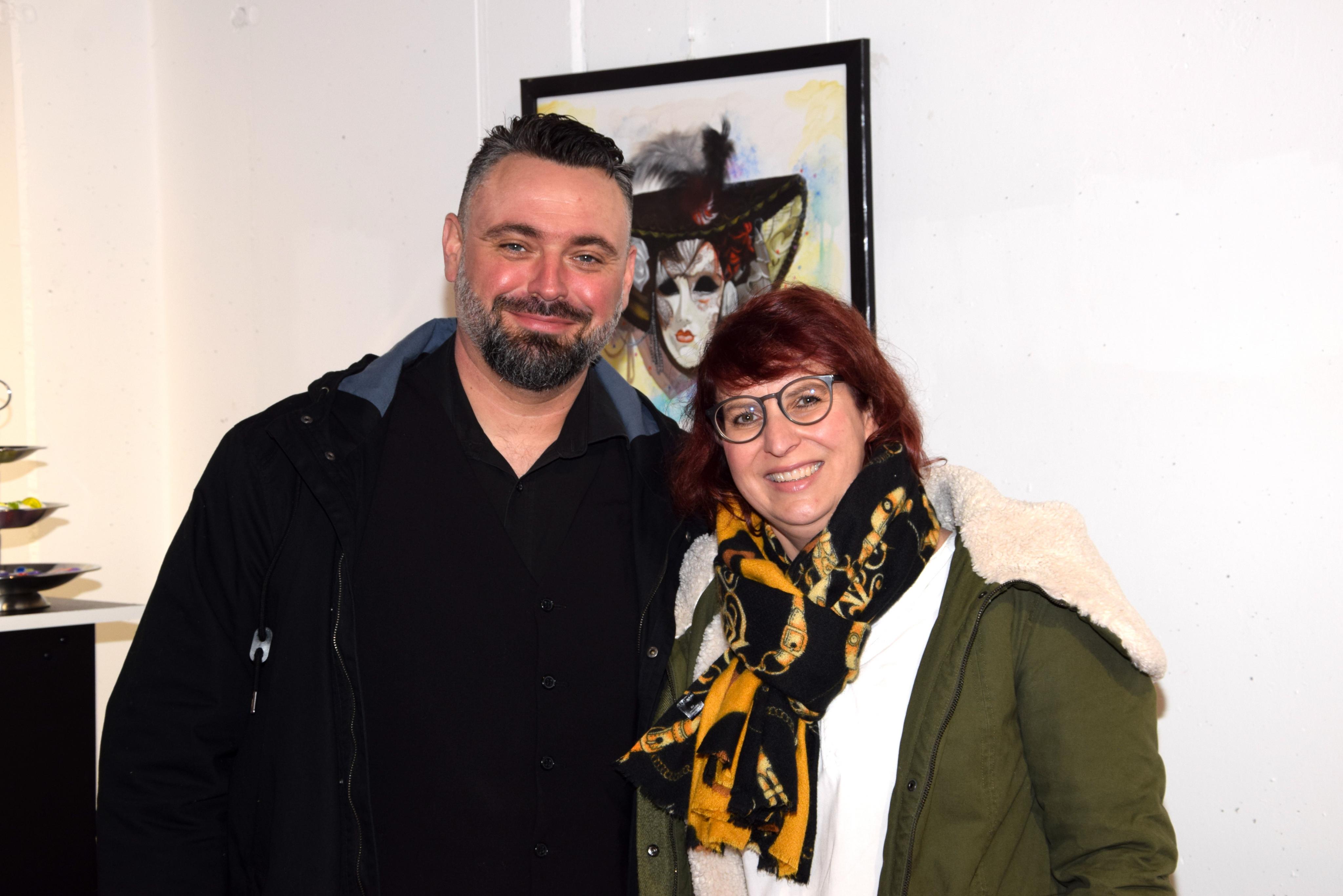 Matthias und Jaqueline Graziadei vor dem Werk "Schöne Maske"