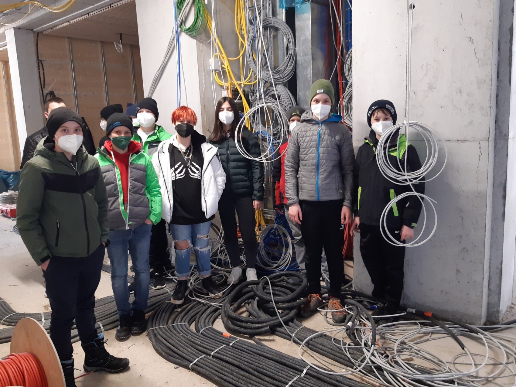 Schülerinnen und Schüler machen sich ein Bild vom Baufortschritt ihrer neuen Schule.