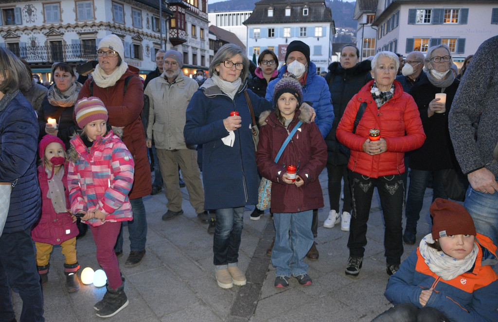 Aktion mit Lichtern, Stille und Schweigen.