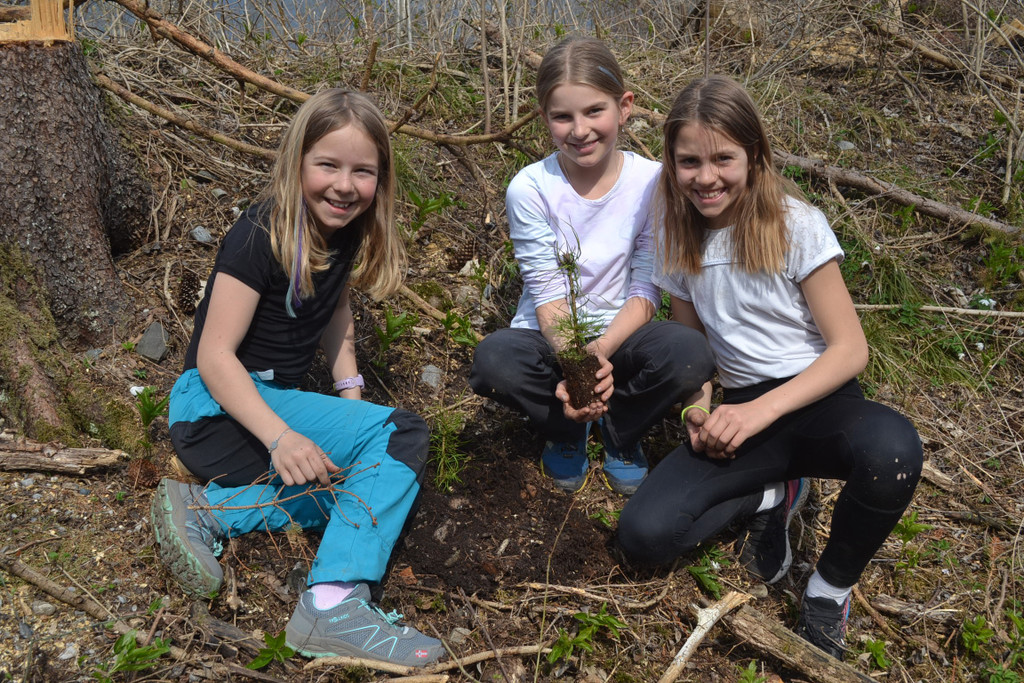 Theresa, Zoe und Louisa arbeiten gerne im Wald.