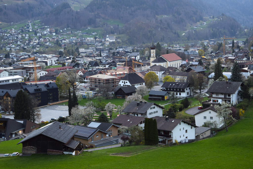 Blick von Schruns nach Tschagguns am Abend des Gründonnerstags 2022