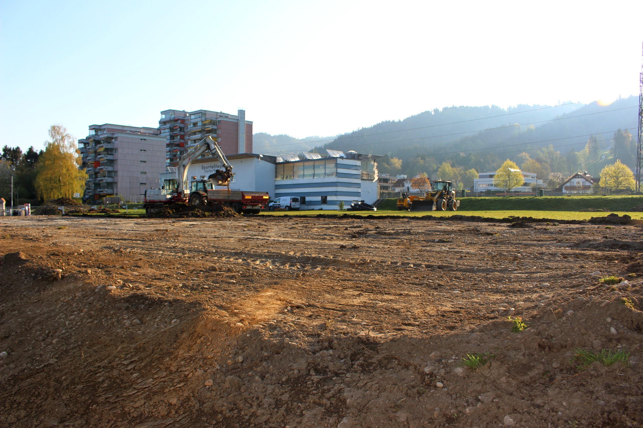 Die Bauarbeiten für die Errichtung eines neuen Kunstrasen-Trainingsplatzes auf der Sportanlage Hoferfeld haben begonnen. Für die Lochauer Fußballfamilie geht ein lang gehegter Wunsch in Erfüllung.