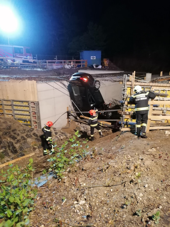 Pkw in Mattersburg in Baugrube gelandet: Bilder des Bergungseinsatzes