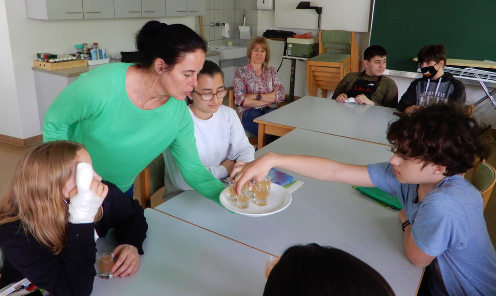 Bevor es ans Arbeiten ging, durften alle schon einmal reinen Apfelsaft probieren.
