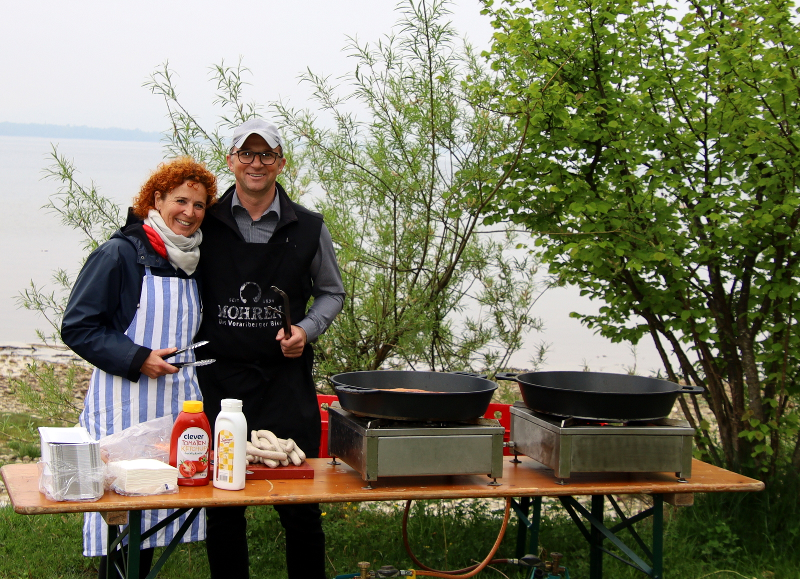 Carmen Achberger (Gemeindeamt Hörbranz) und Bauhofleiter Hubert Schreilechner bestens vorbereitet am Grill