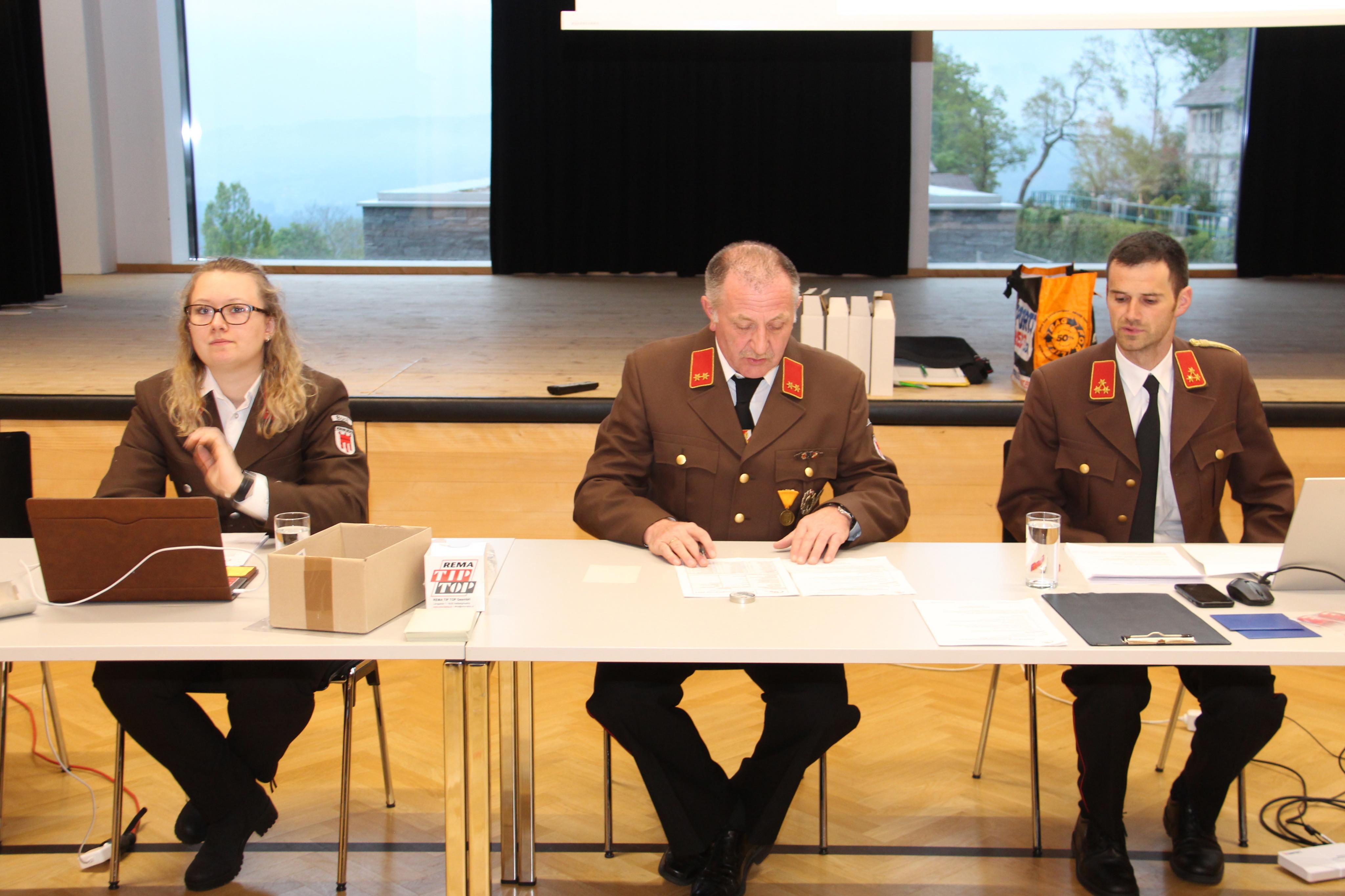 Schriftführerin Julia Ritter, Vize-Kommandant Harald Gunz und Buchs Feuerwehrchef Daniel Eberle