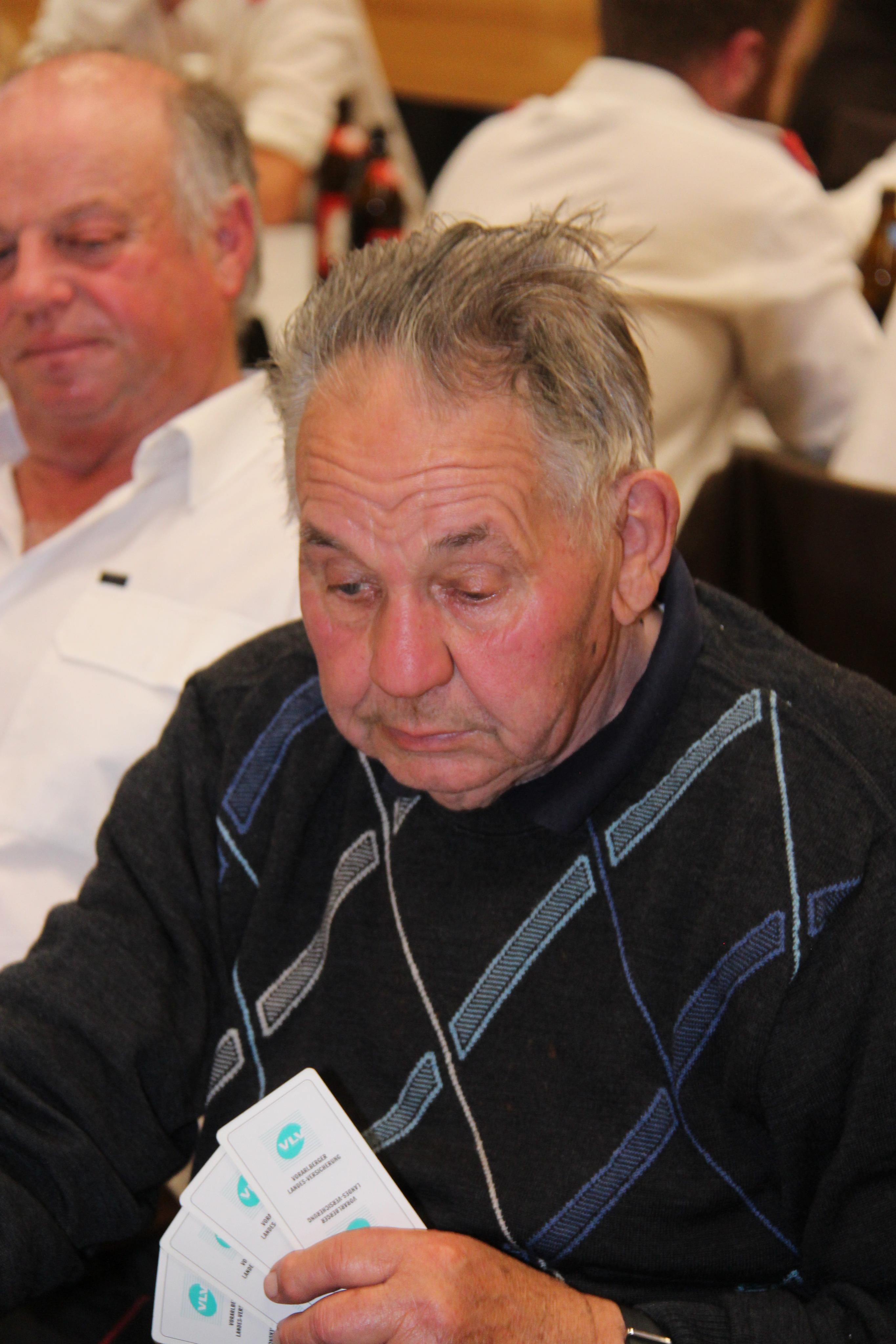 Ehrenmitglied Engelbert Flatz beim gemütlichen Teil der Versammlung