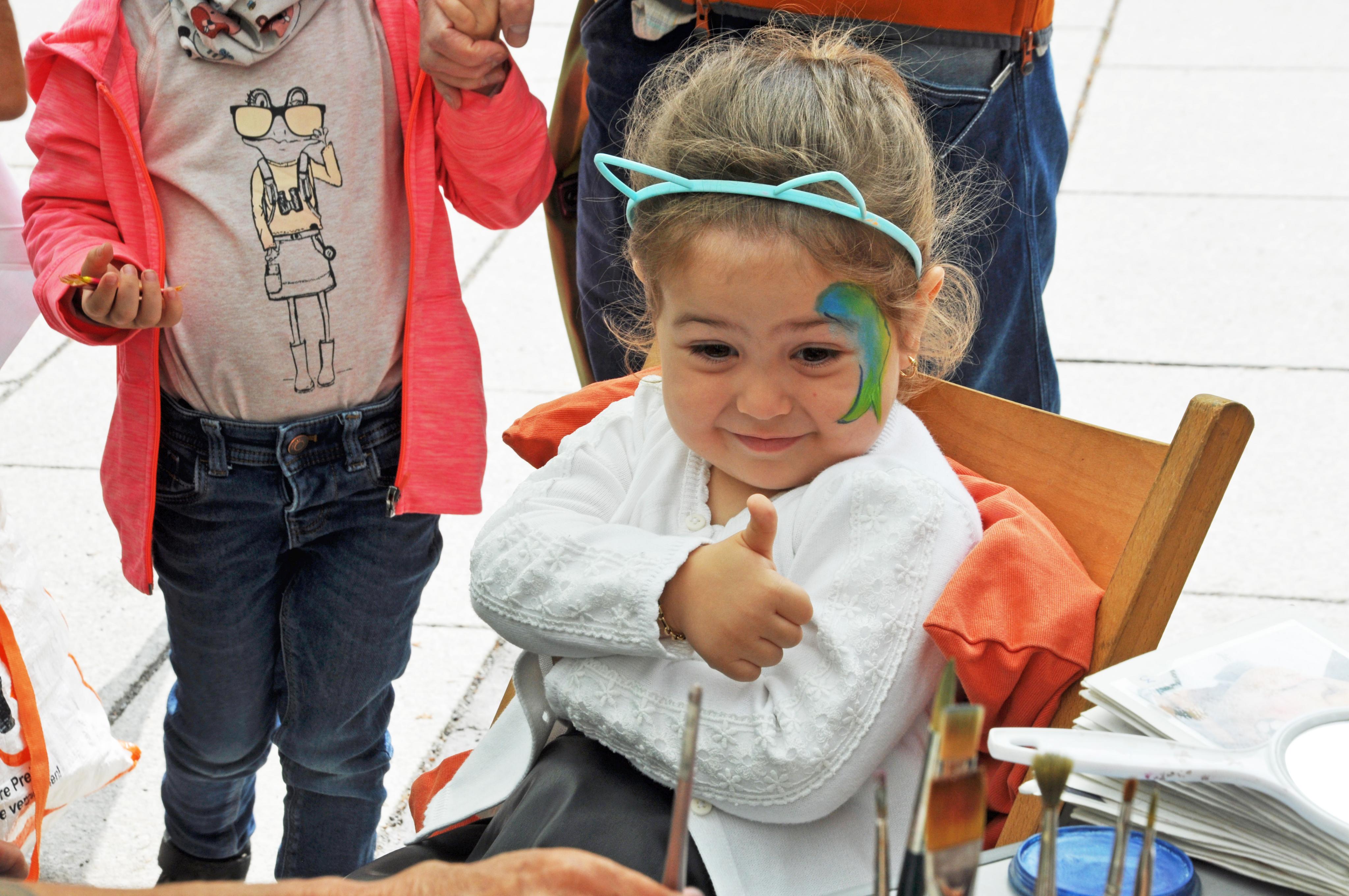 Daumen hoch für das kunstvolle Schminken.