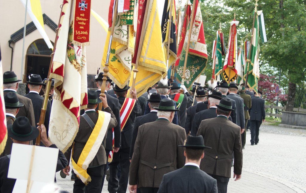 Die Fahnenabordnungen tauchten das Dorfzentrum in ein Farbenmeer