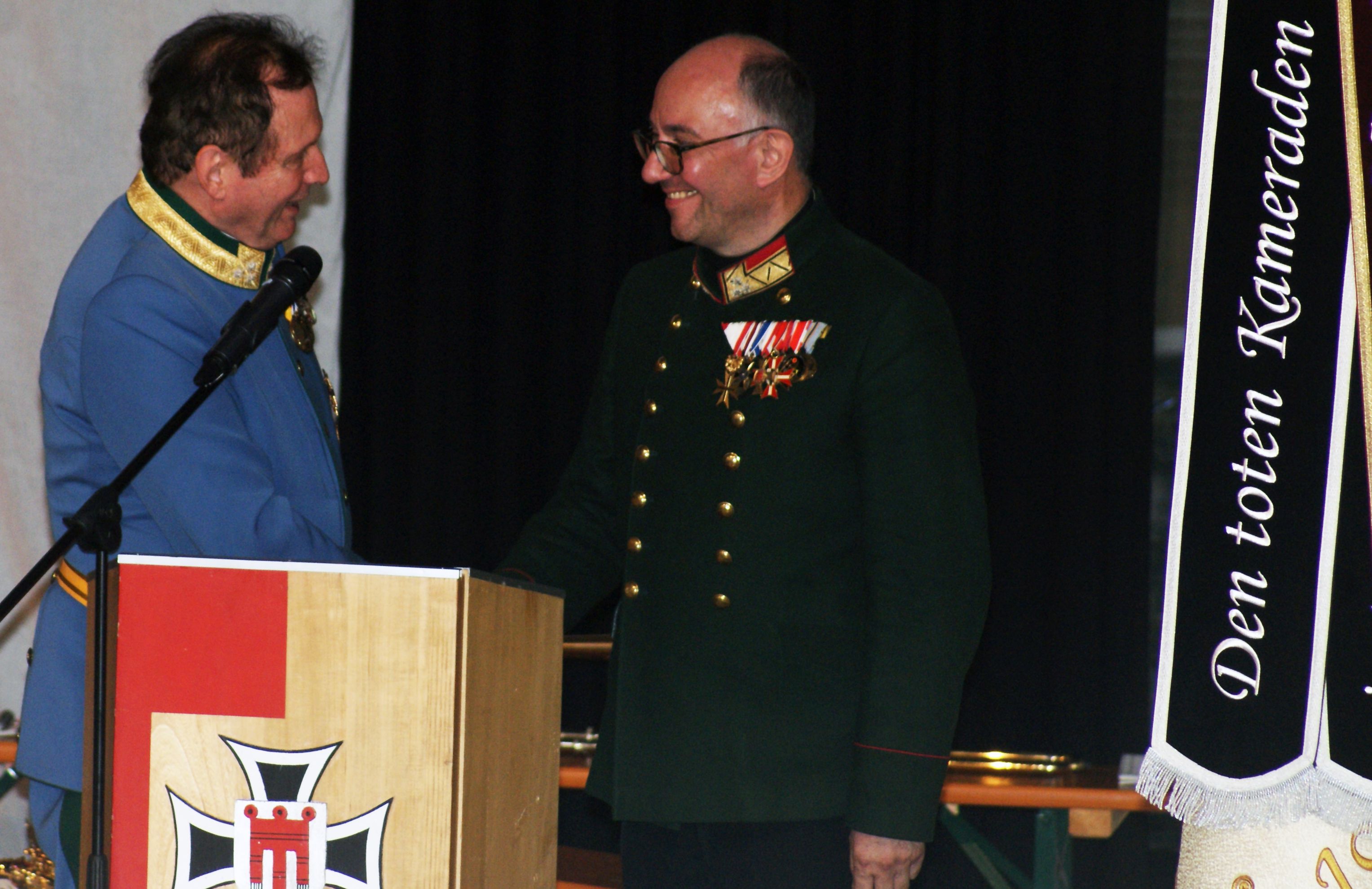 Gratulation von Oberst Erwin Fitz an den wiedergewählten Landespräsidenten Alwin Denz