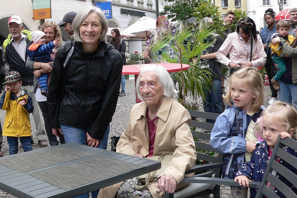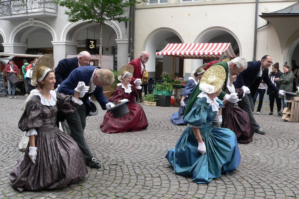 Auftanz zu Ehren der Jubilärin, Frau Edith Mark, für 70 Jahre Mitgliedschaft bei der Trachtengruppe Feldkirch am 28. Mai 2022 in der Neustadt