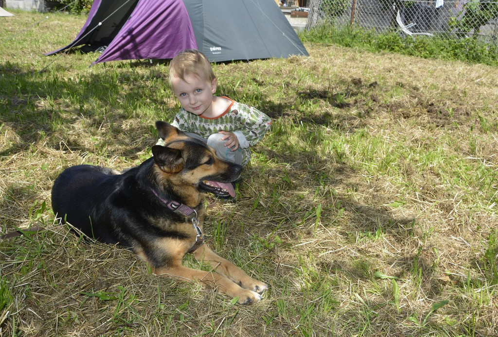 Derweil gesellt sich der kleine Jonathan gerne zur Hündin Sia.
