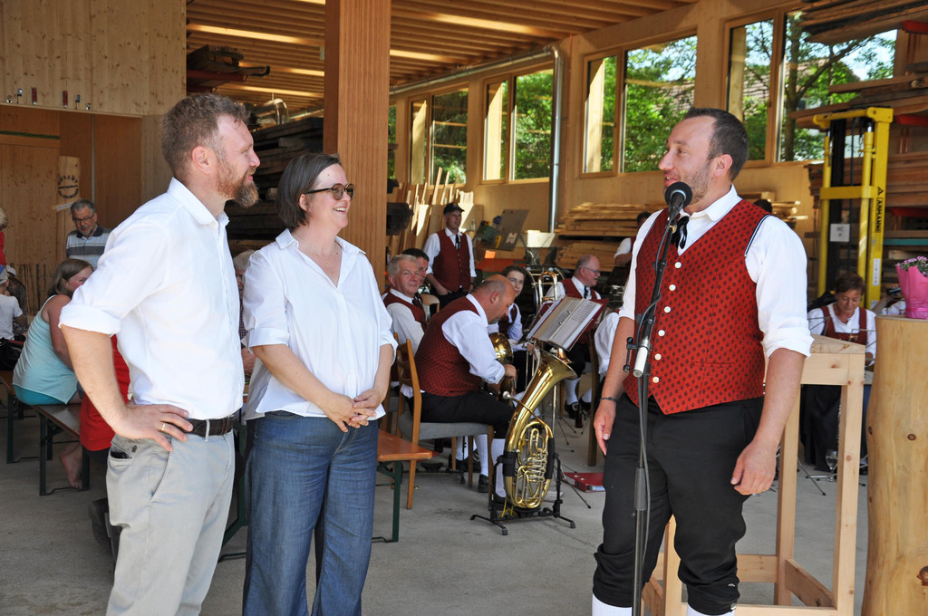 Die Hausherren Hubert und Ursula Feldkircher freuten sich über den Besuch der Abordnung der Stadtkapelle Dornbirn-Haselstauden.
