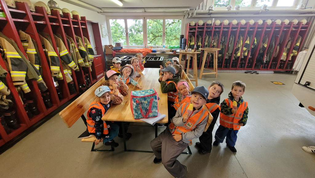 Polizei und Feuerwehr im Kindergarten Übersaxen