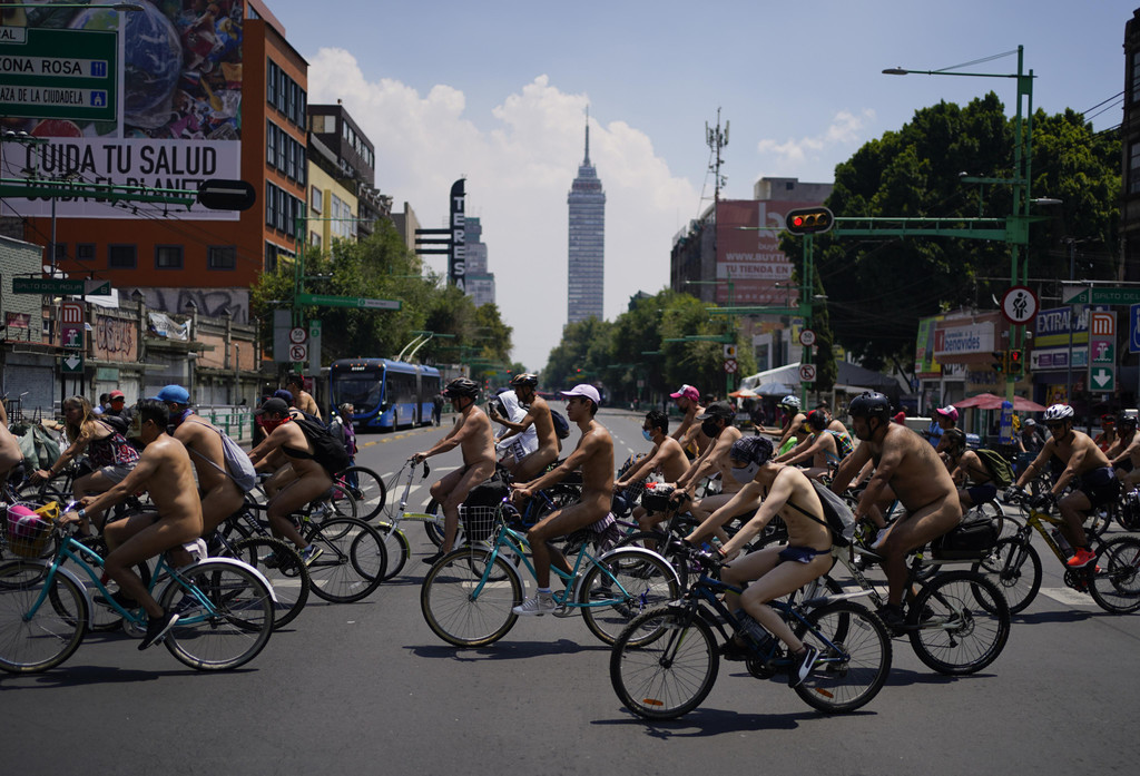 Mexiko-Stadt: Nackt-Radler protestierten gegen Autoverkehr