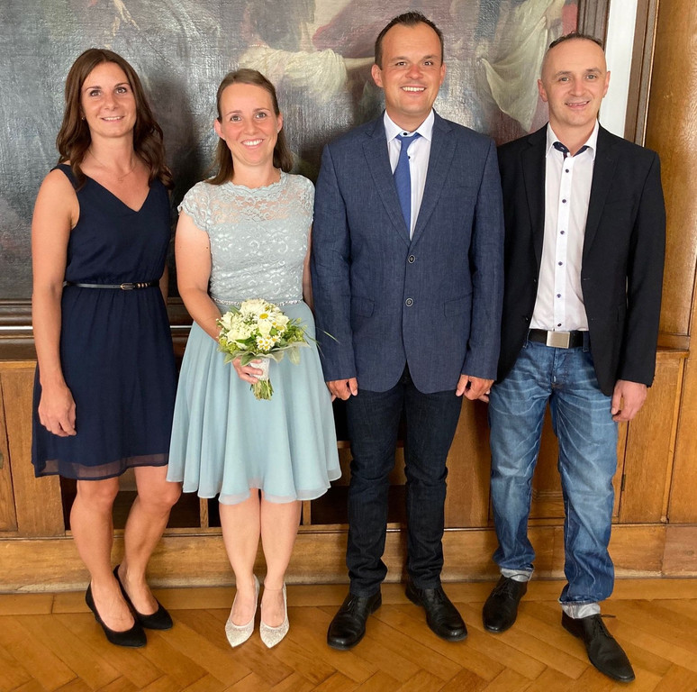 Sabine und Manuel mit den Trauzeugen Barbara und Martin.
