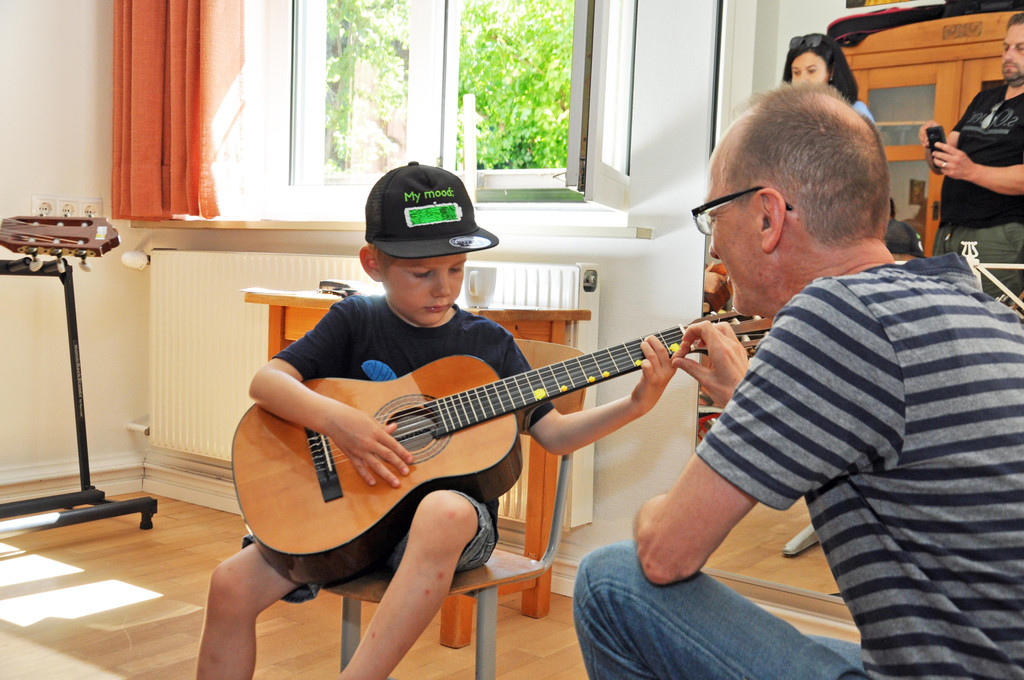 Hier gab es erste Versuche auf der Gitarre.