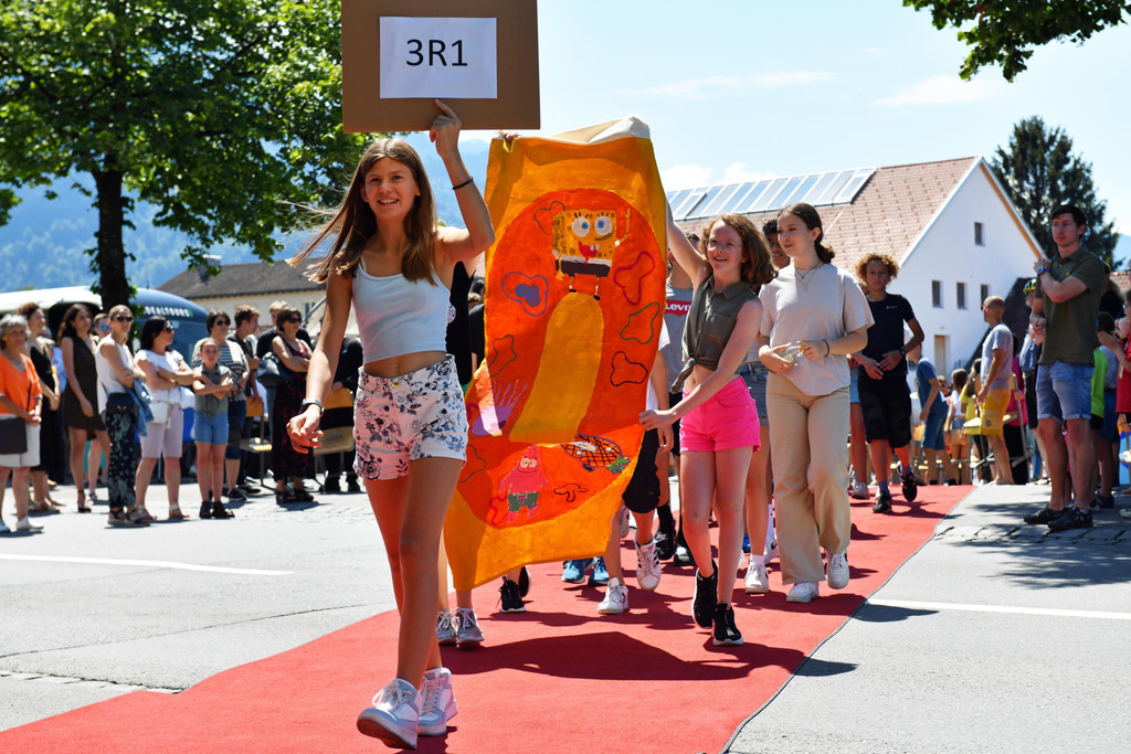 Die Schüler zogen über den roten Teppich in die Schule ein.
