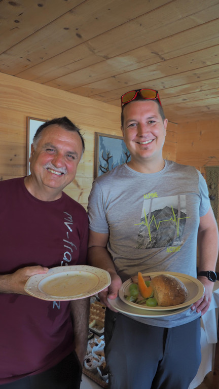 Vesi und Fabian genießen das Buffet.