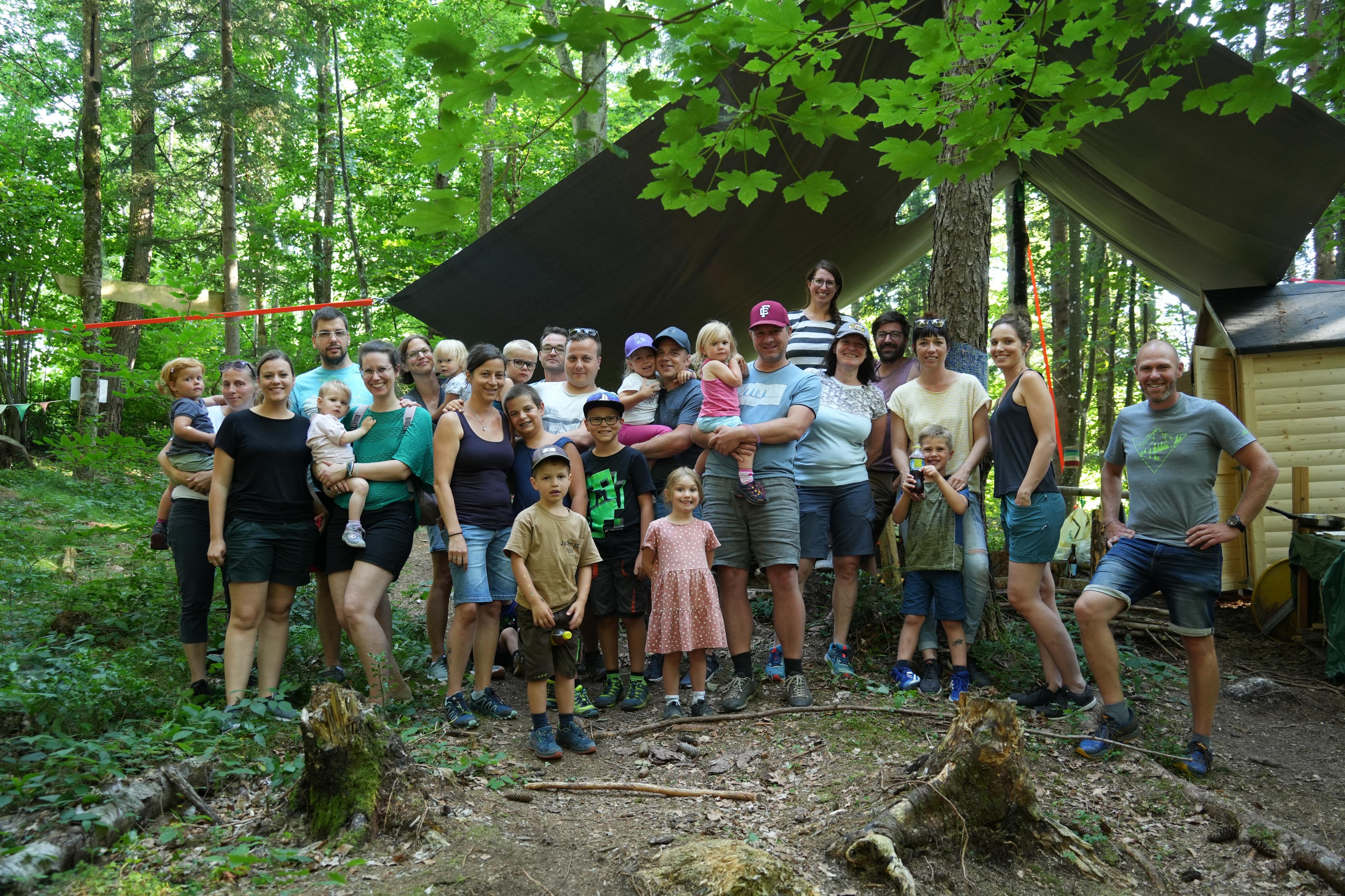 Mit einem Grillfest haben sich Gemeinde und Kindergarten-Team bei den Eltern für ihr wunderbares Wald-Engagement bedankt. (c) Kathan (kam)