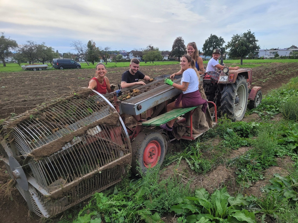 Gallery MeineGemeinde Weiler Weiler Weiler Lochau Mit nostalgischen Gerätschaften ist der Lochauer Landwirt Johannes Schlachter mit seiner jungen „Mannschaft“ auf dem kleinen Kar Kartoffel-Ernte-Maschine Nostalgie SCHLACHTER 13-09-2022 _6_.jpg
