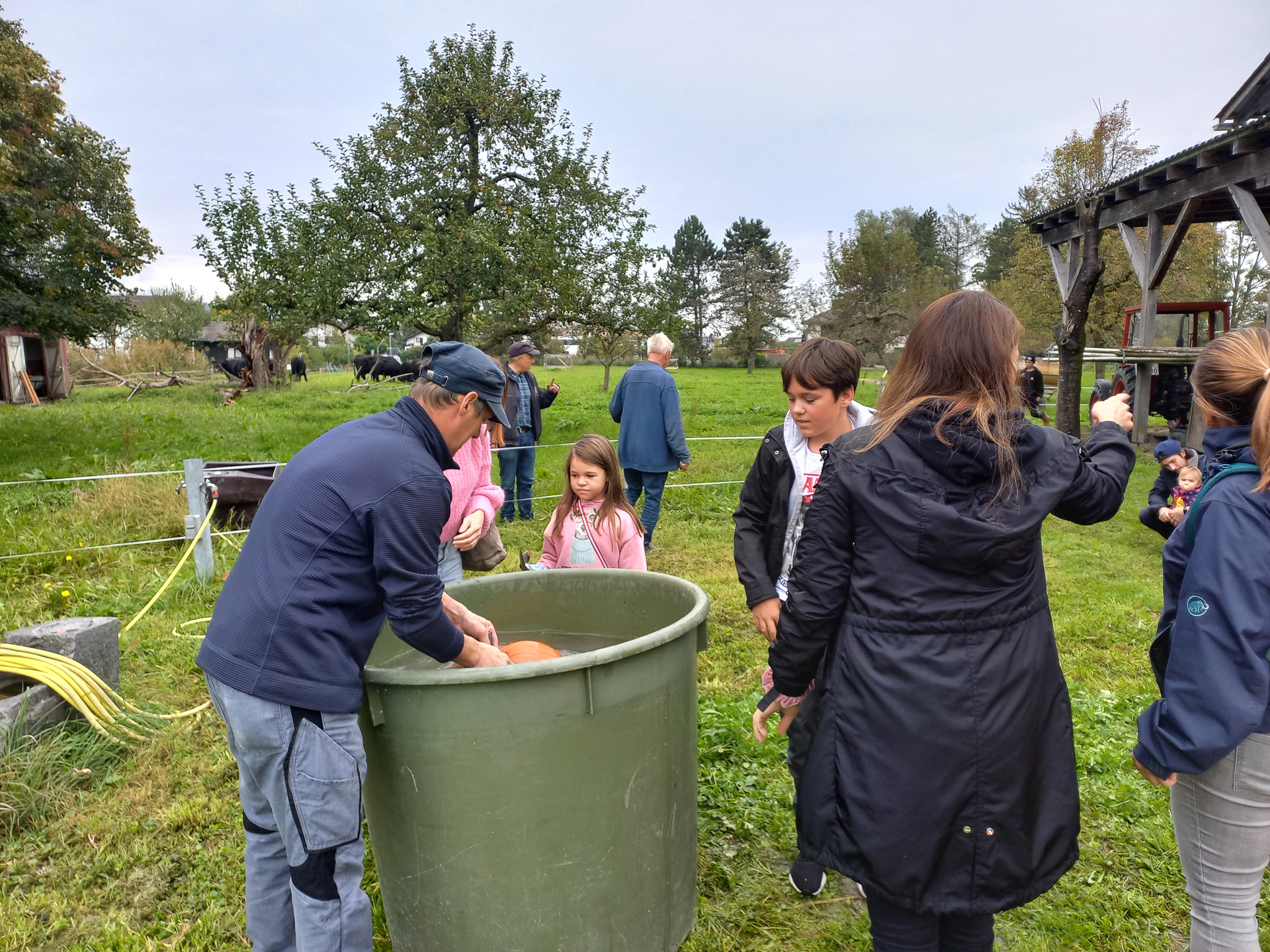 Kreative Kinder schnitzen Kürbisgesichter
