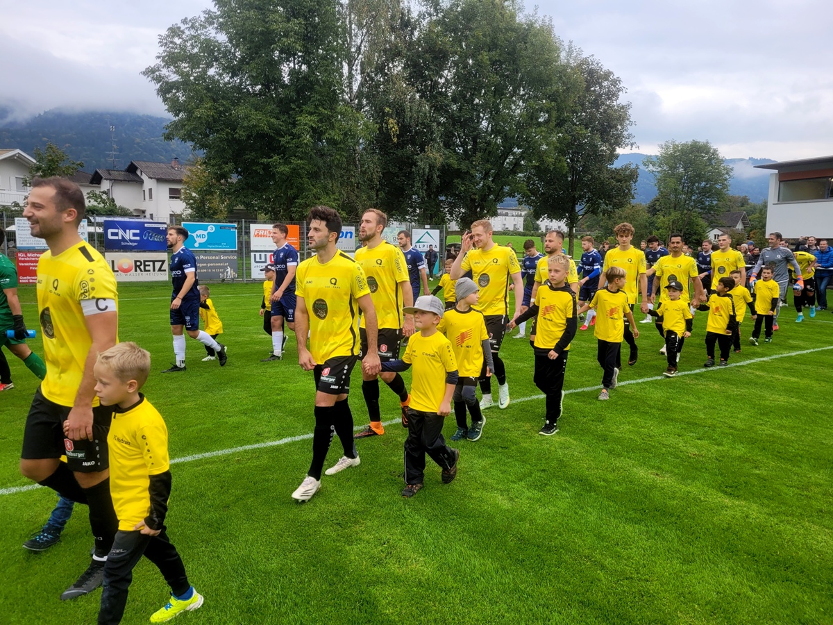 Der jüngste Hörbranzer Fußballnachwuchs begleitete die beiden Mannschaften aufs Spielfeld.