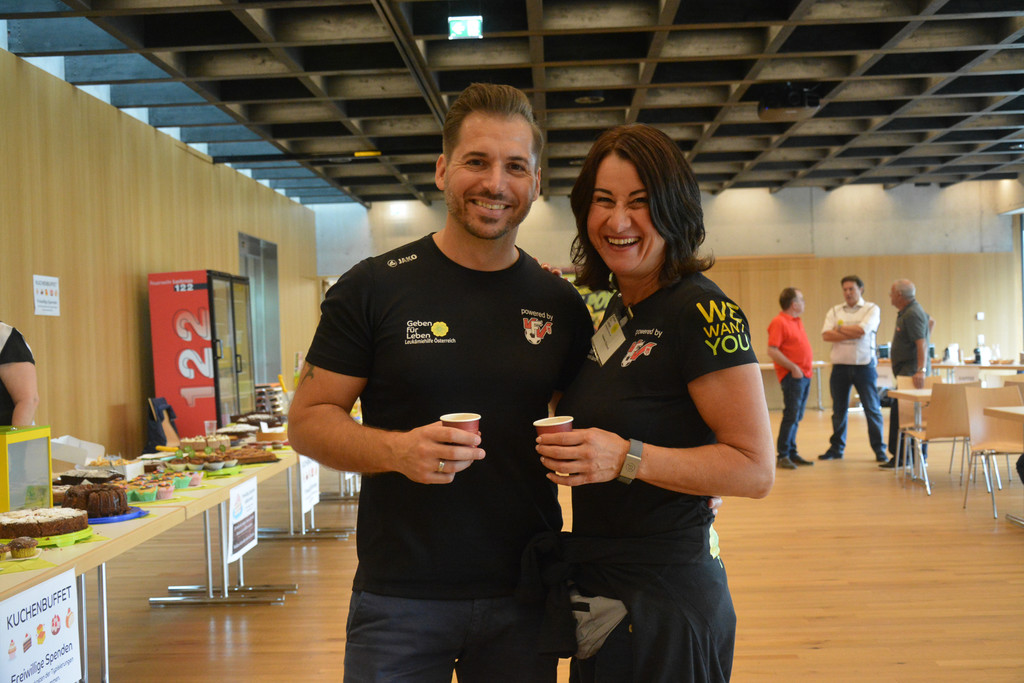 Manuel Kussian und Susanne Marosch von "Geben für Leben" freuten sich über den regen Andrang am Sonntagnachmittag.