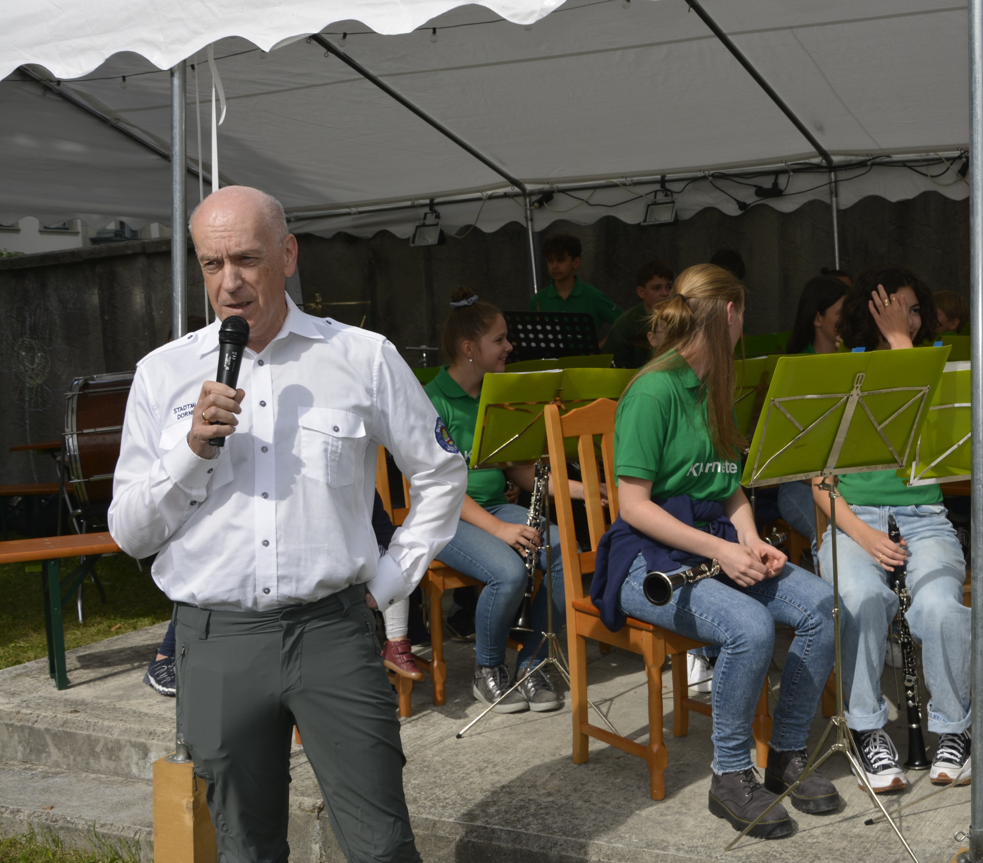 Dr. Robert Schneider (Obmann Stadtmusik) bei der Begrüßung der Besucher.
