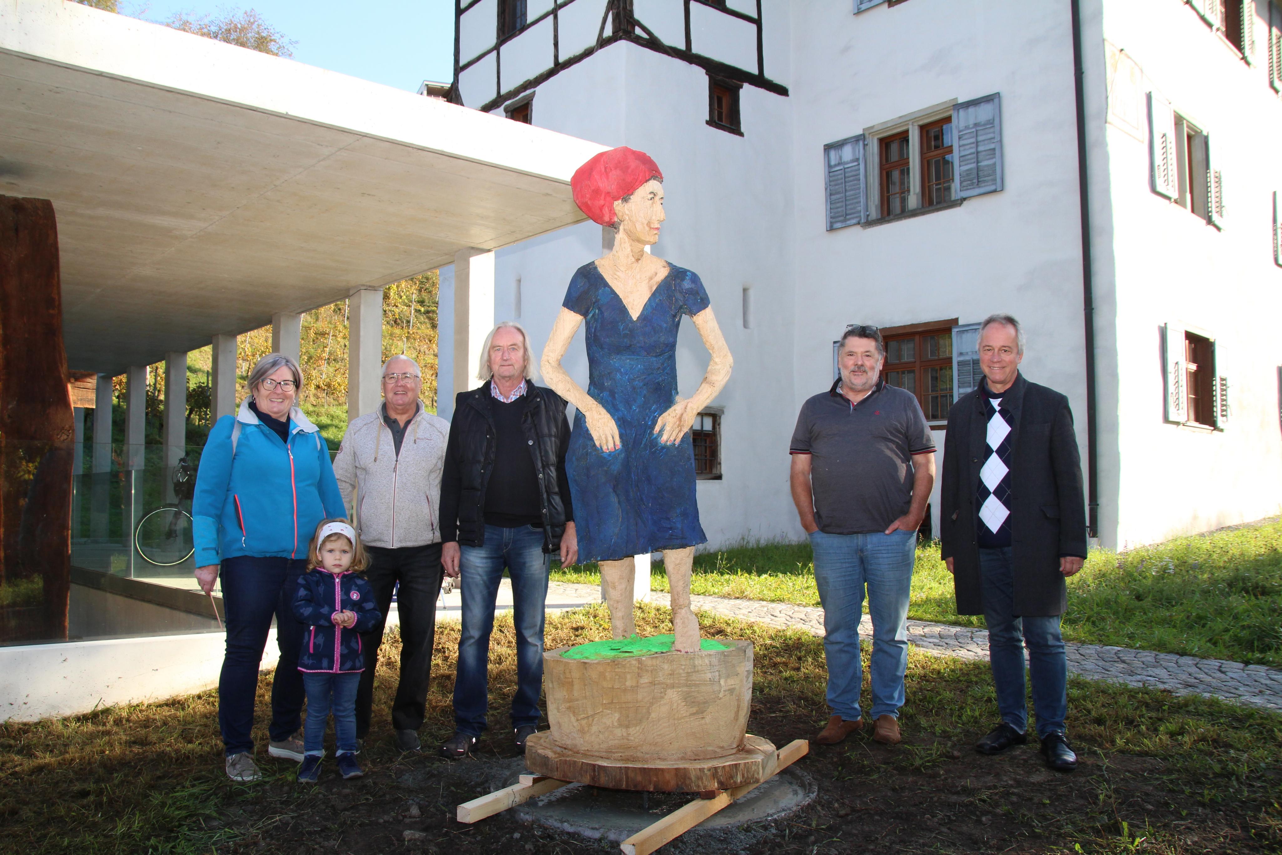 Kunscht im Kear - Aufstellung der Holzfigur Die Winzerin