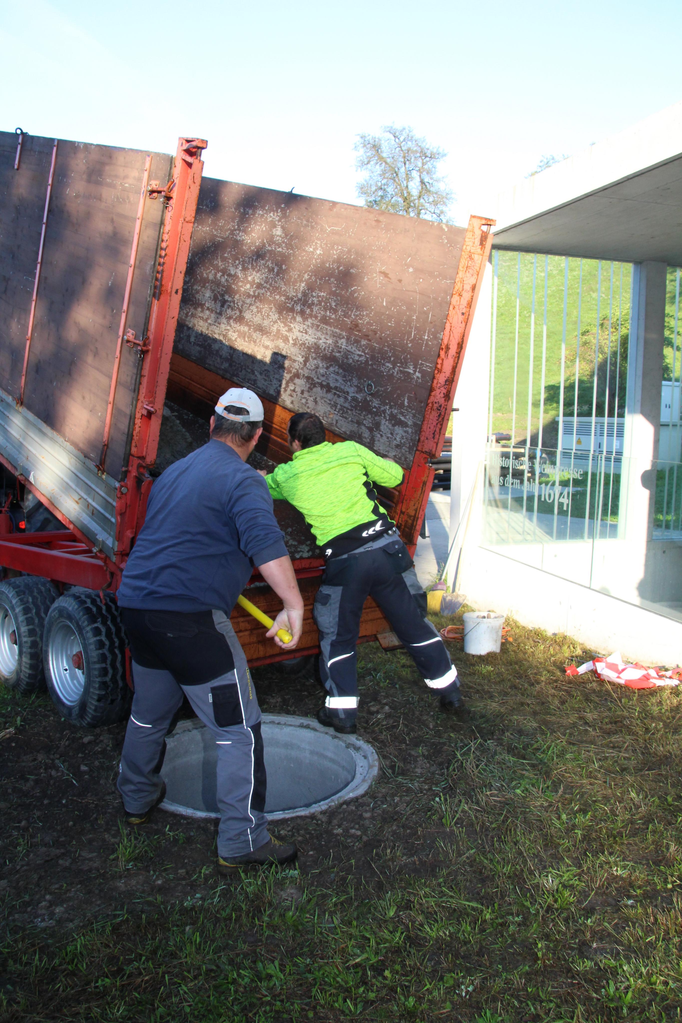 Kunscht im Kear - Aufstellung der Holzfigur Die Winzerin