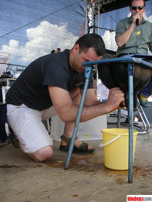 Wolfgang versucht sich auch an der Plastik-Kuh.