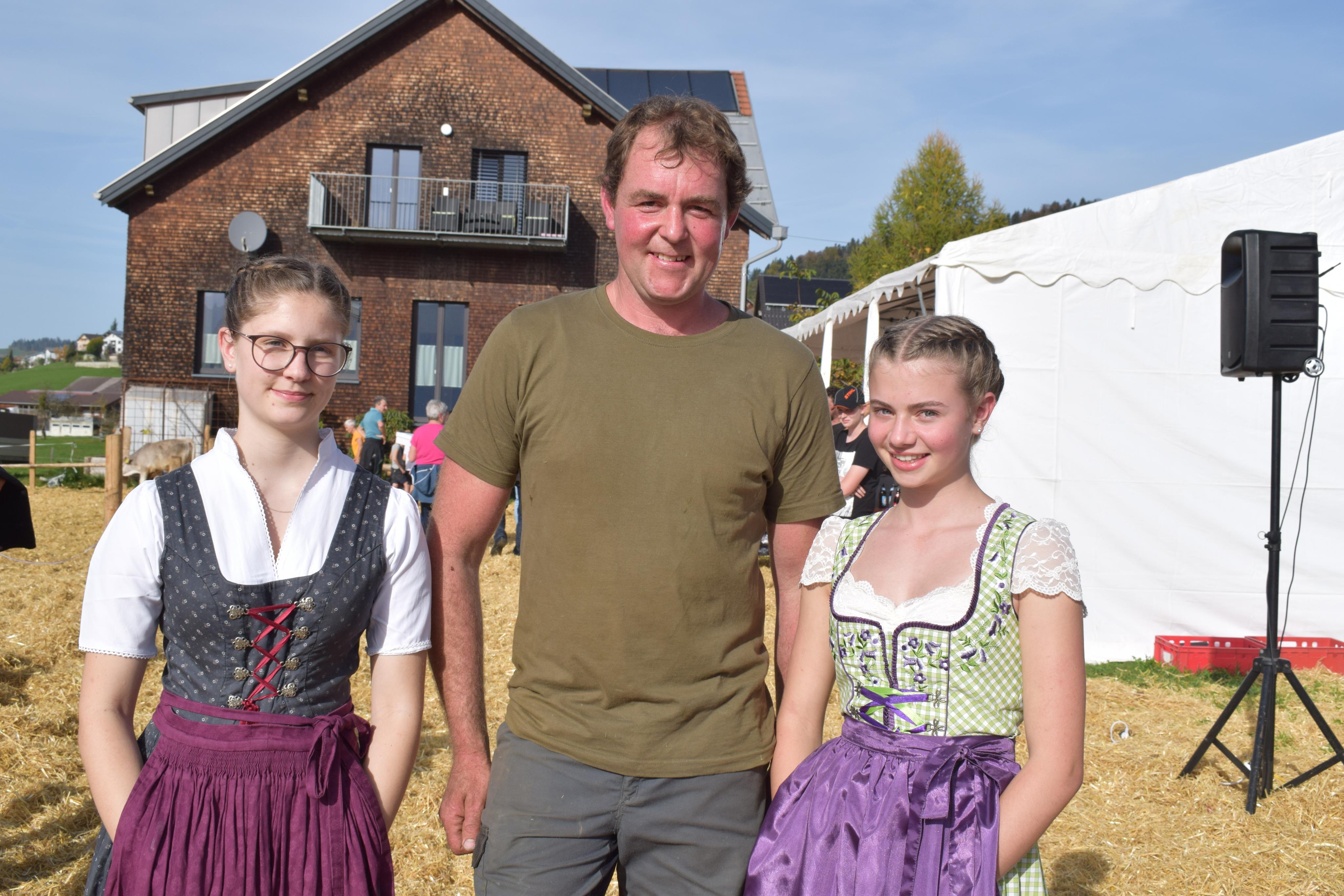Im Einsatz: Obmann Martin Vögel und seine Helferinnen Theresa und Leonie.