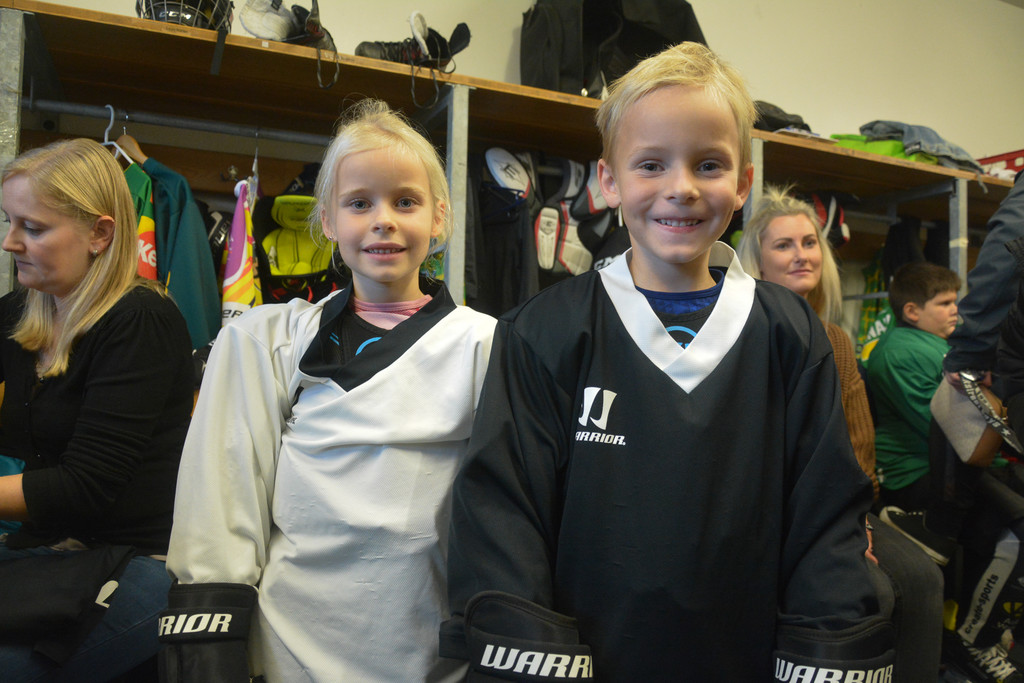 Charlotte und ihr Bruder Sam wagten sich zum ersten Mal in die Eishockeyausrüstung.
