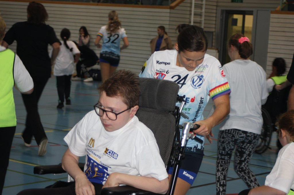 Politiker spielen mit Schulheim Mäder Handball