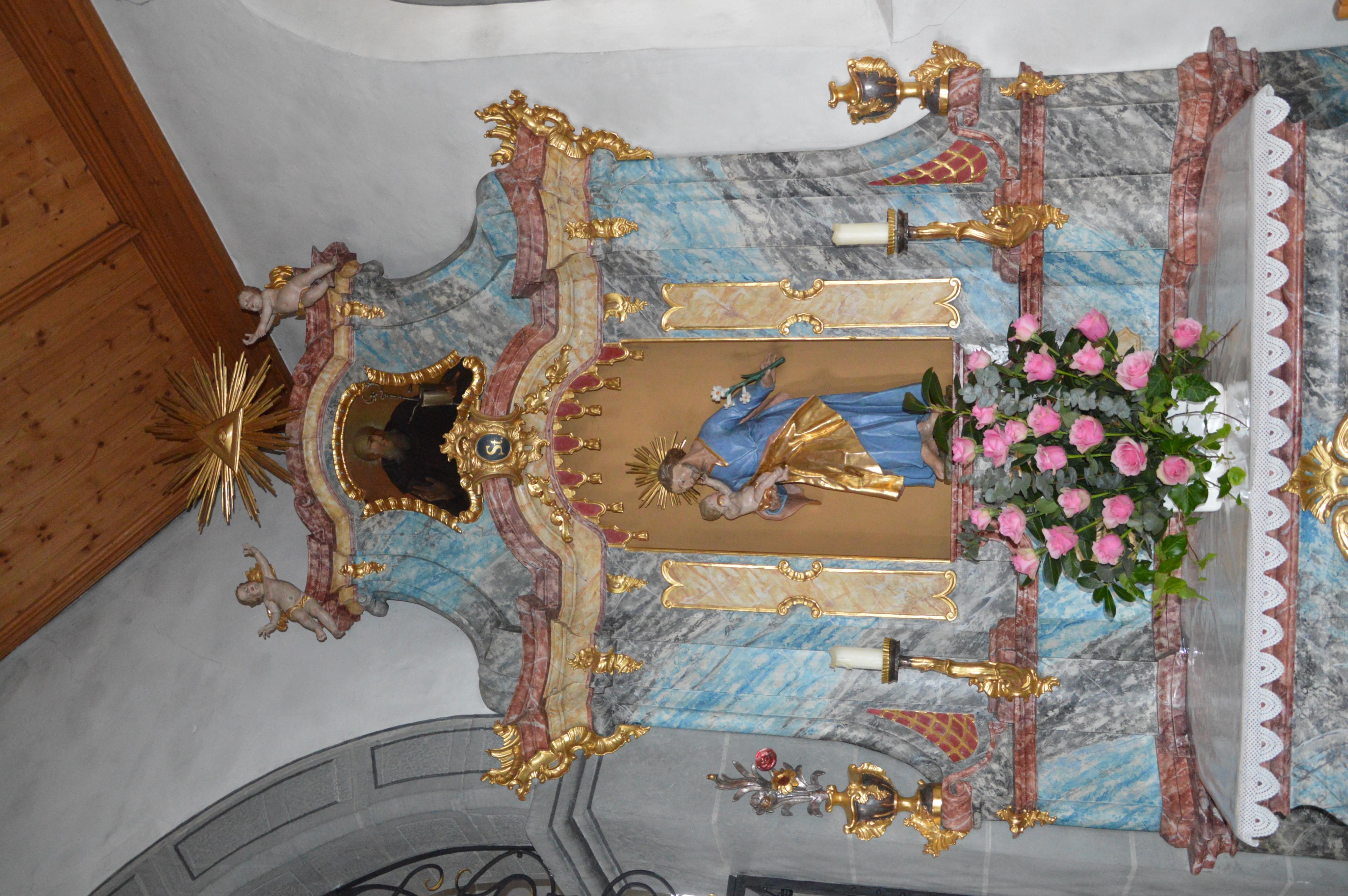 Mit frischen Rosen geschmückter Seitenaltar